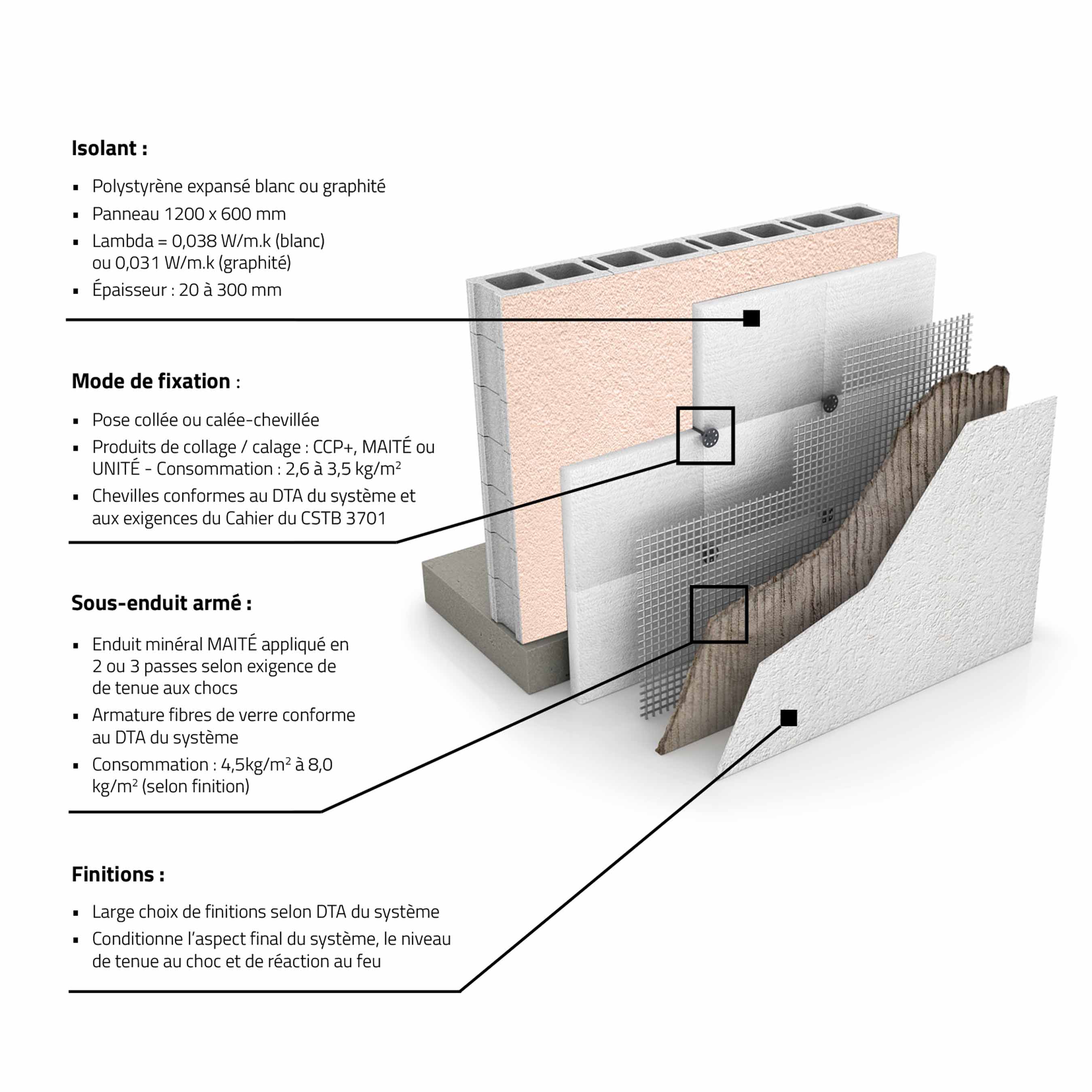 • Avantages : excellente résistance au feu, bon confort acoustique, durabilité élevée.